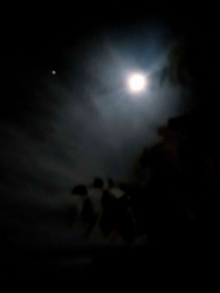 雲に見え隠れしながら美しく光り輝く満月でした