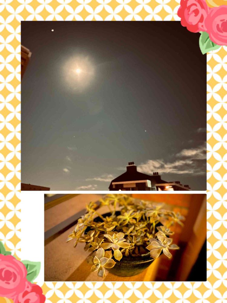 ベランダの朧月さんが月の明かりに照らされていました🥰