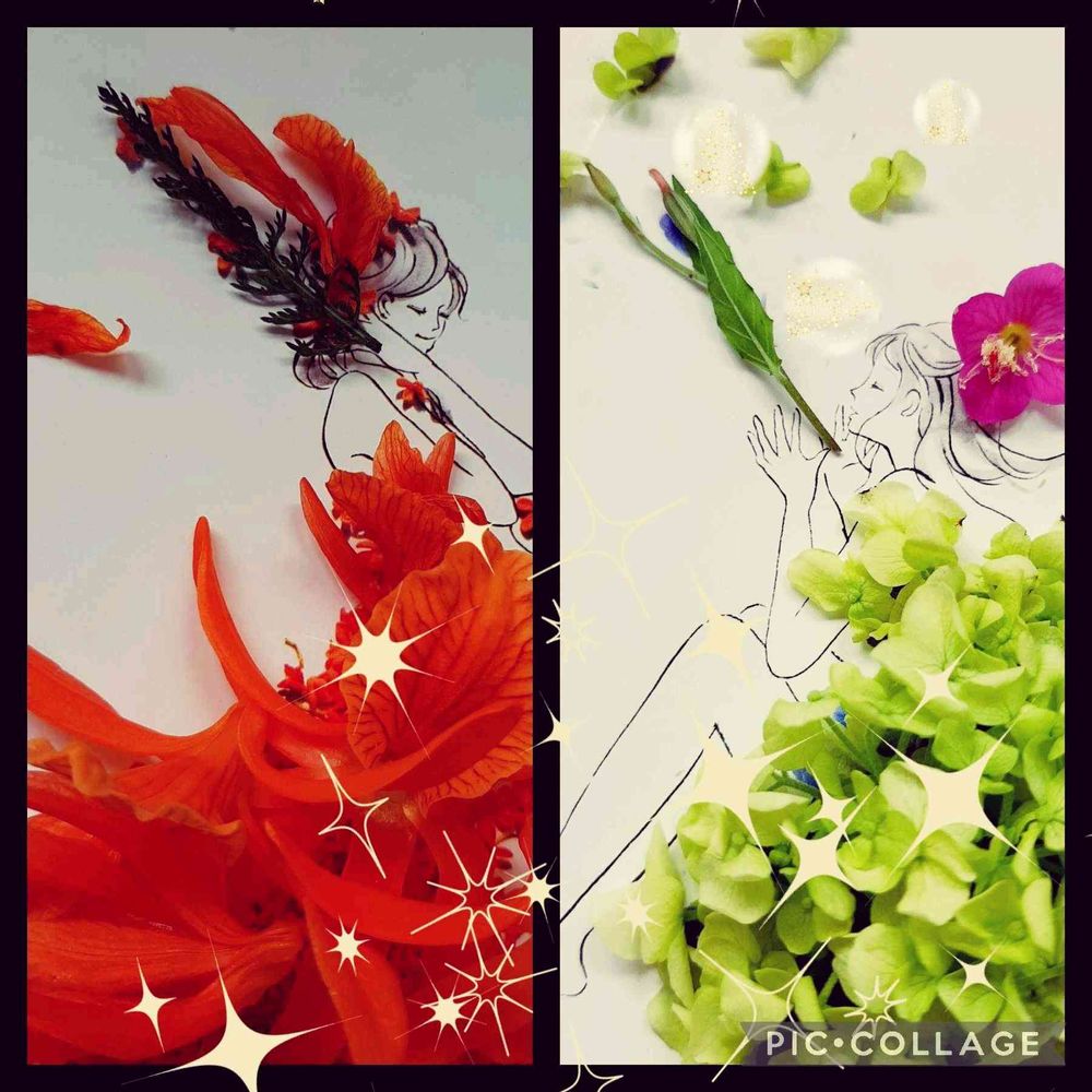 葉菜桜花子さんのイラストに花びら乗せて作りました♬