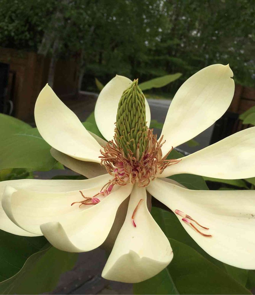 朴の木。両性花で、花びらが全開するときは、雄しべが散ってしまう。葉も花も巨大である。日本の広葉樹のなかでは、最大級。朴にはお世話になった。酒の肴に合う朴葉味噌も食べたし、朴歯の下駄も昔は履いていた。他の植物が根元まわりに生えないような強いアレロパシー(他感作用)があるようだ。図体はでかいが、ノミの心臓を持つ植物かもしれない。