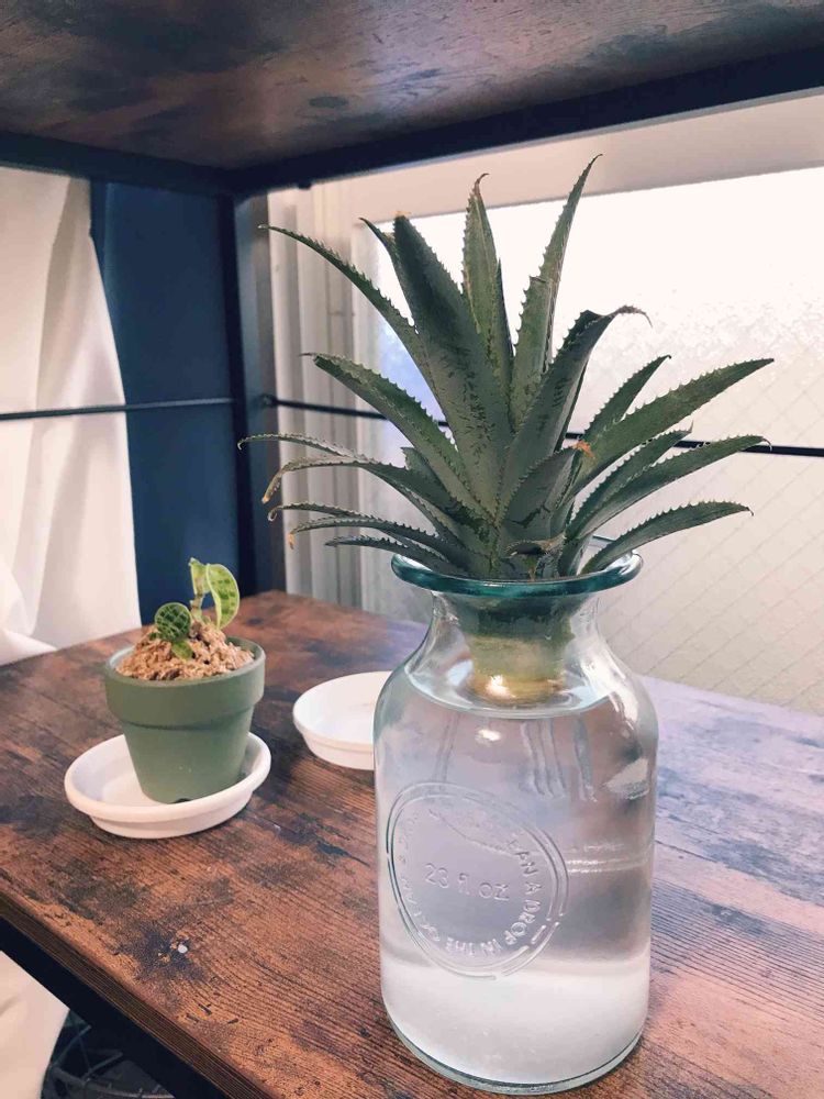 先日買ったスナックパインを水に浸けてます!濁って見えるのは発根剤です。