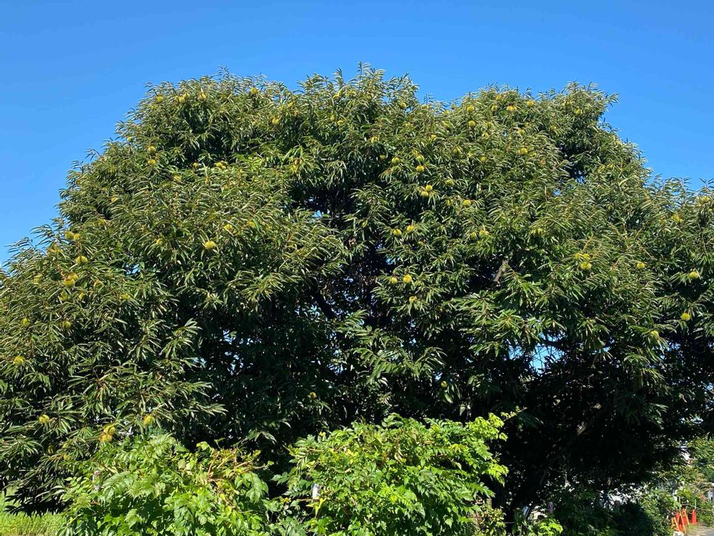 チャリンコでスーパーへ行く途中、まさに大きな栗の木を発見💕=+。:.゚٩(๑>◡︎<๑)۶:.。+゚