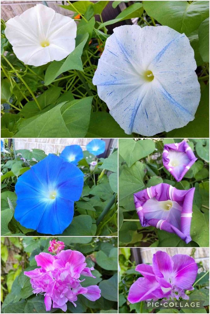 今朝の朝顔たち&昨夕の💙→萎みはじめたヘブンリーブルー💗✊