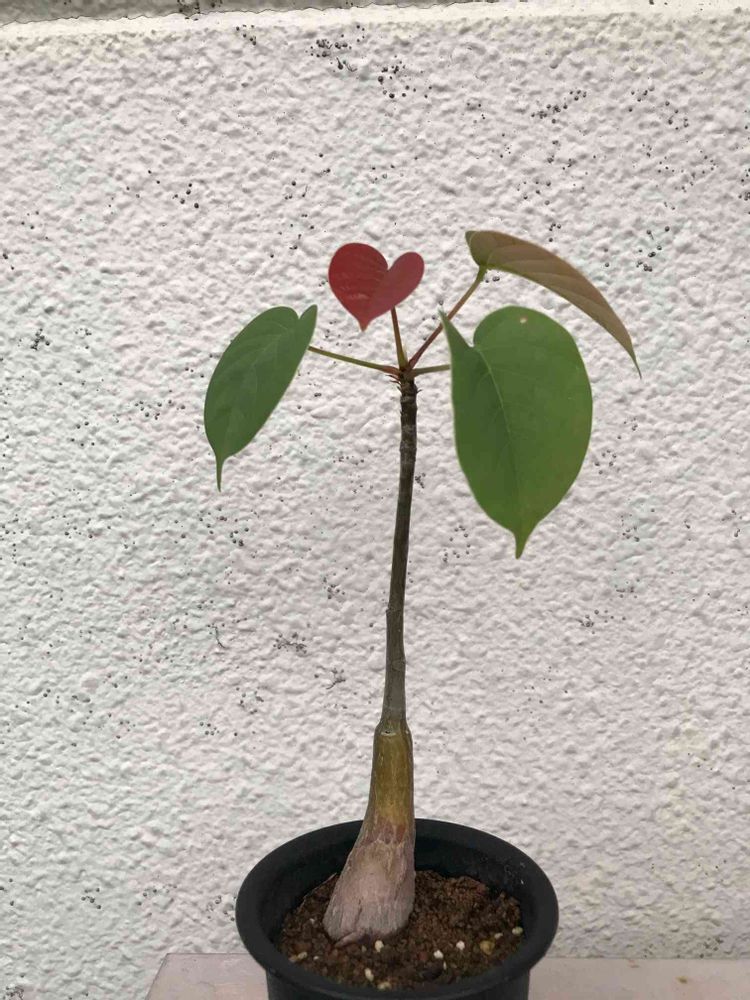 うちに来て一年半ぐらいだが、ボトルツリーみたいに曲がった塊茎になってきた。ひと回り太ったとは思う。