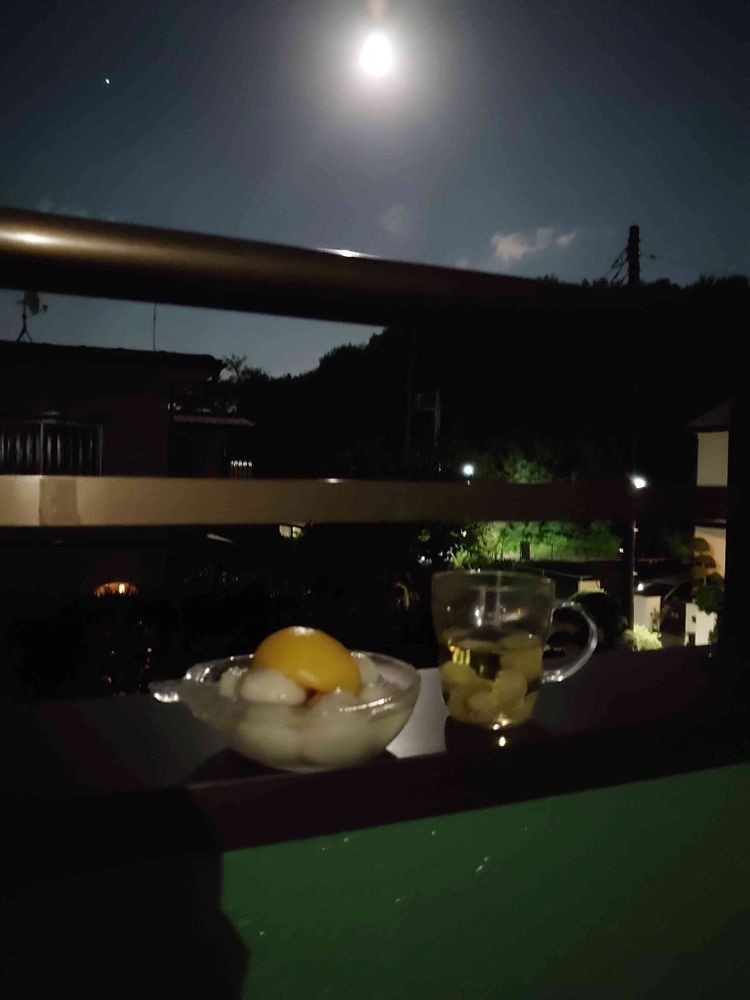 白玉にお月様に見立てて缶詰の黄桃を乗せてみました。