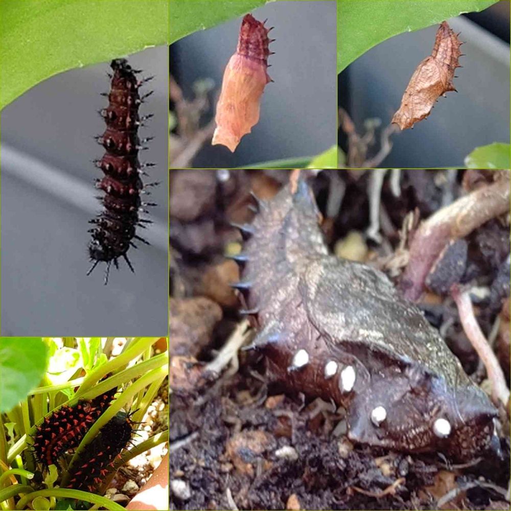 右下のサナギが 此また綺麗なサナギ白い点々の色は実際は銀色に輝いてるのですよ身体はグレー