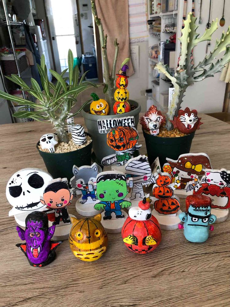 真ん中のグリーンの可愛い🤭 癒されますね 早くハロウィーンやって来て欲しいと