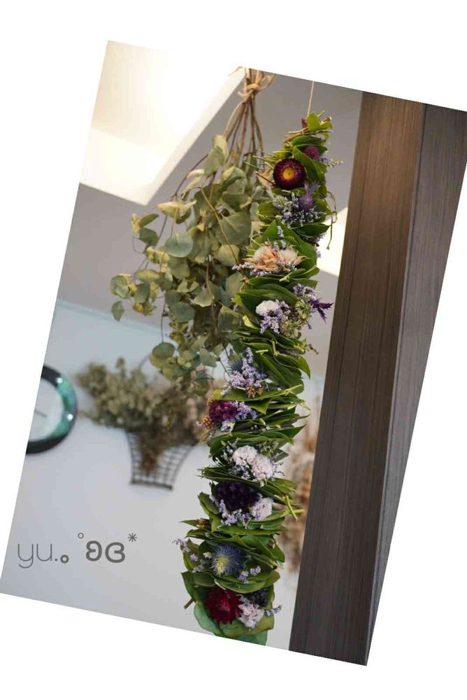 ガーランドって旗みたいなのが横に繋がってるものだと私も思ってたんだけど、紐で吊るしてあるものはみんなガーランドって言うんだとか…🌿