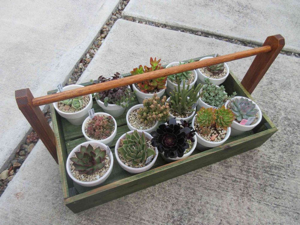 多肉鉢移動箱(岡持ち)です。 今回は2色に塗装しました。(^^♪