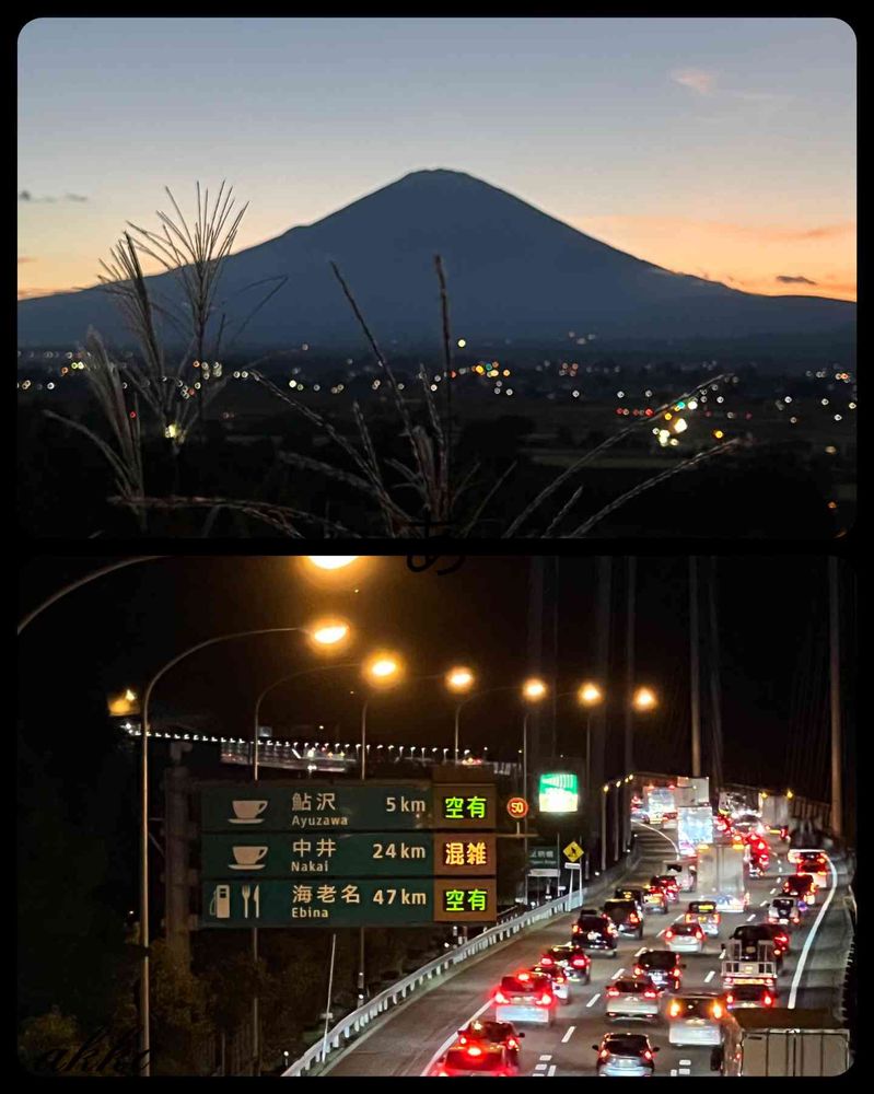 そうなんですね 車のライトとススキ民家の灯り富士山が映えてなんとも言えず👍です。