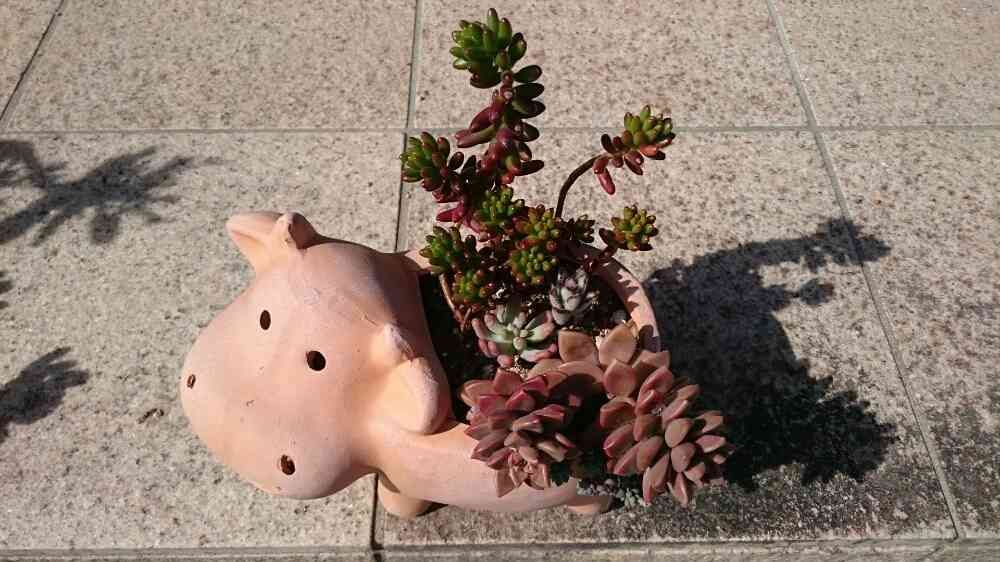 かばさん鉢。結局、後ろの虹の玉と手前のブロンズ姫は、そのままにしてました。真ん中にいた黒兎耳は、ちょんぱして上の部分を挿し芽に。隣には別の鉢からちょんぱした恋心さんを。ブロンズ姫の下には姫星美人がいます。
