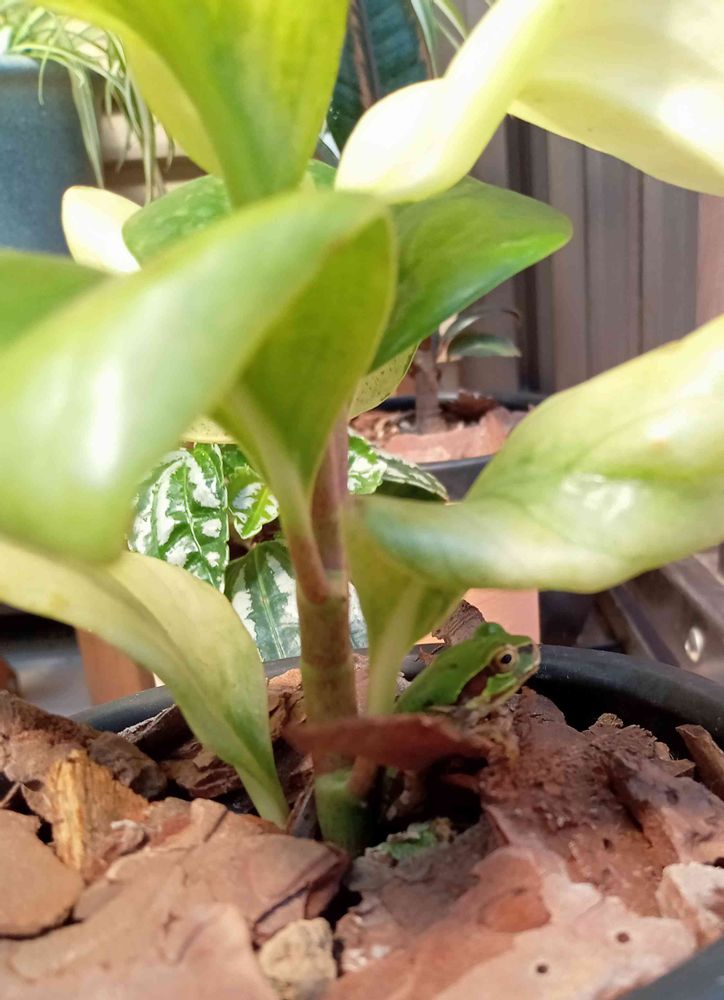 もう僕はぺぺちゃんの葉っぱになる🐸🐸🐸葉っぱにいないと思ったら、チップに手をおいて空を眺めてるし😍