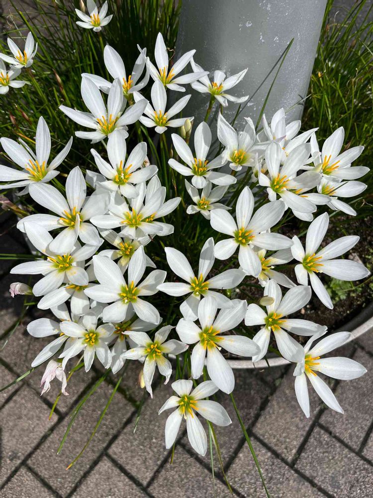 駅のロータリーにはタマスダレのプランターが10個くらいあって、今まさに満開‼️