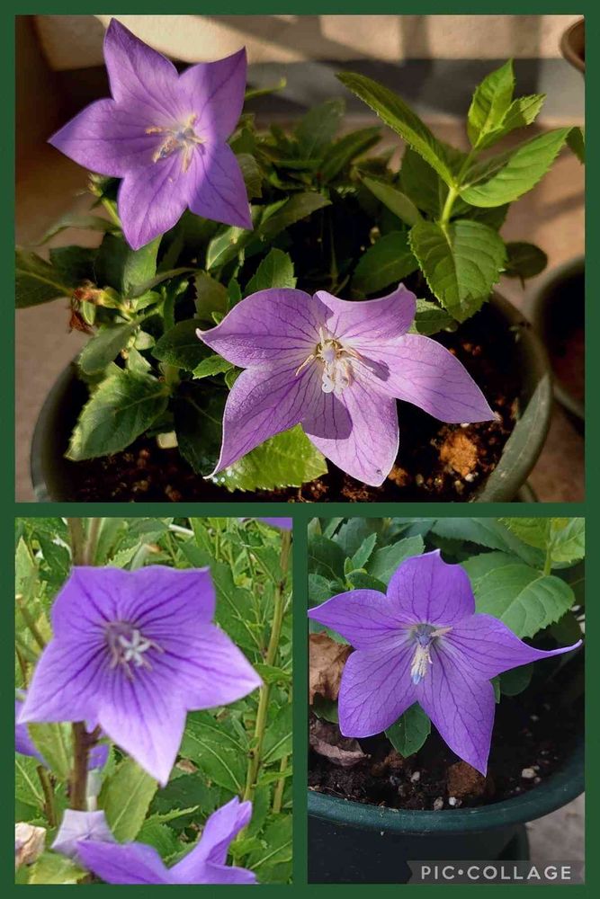左下は大船フラワーセンターの地植えのキキョウ、上と右下はベランダの矮性桔梗です。同じ物を写したのですが、写した時刻が違うので上はピンクっぽく写りました😅