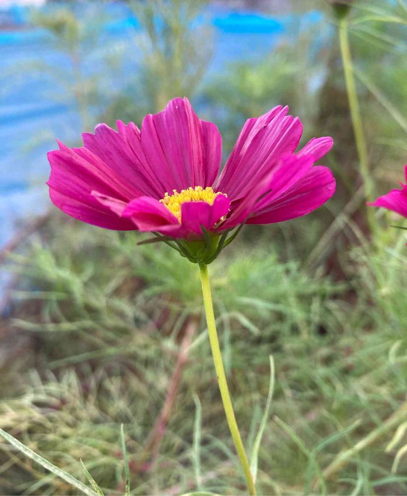 よく見るコスモスの花びらとは少し違うようです。まだまだ暑いですが、季節は移り変わっていますね。