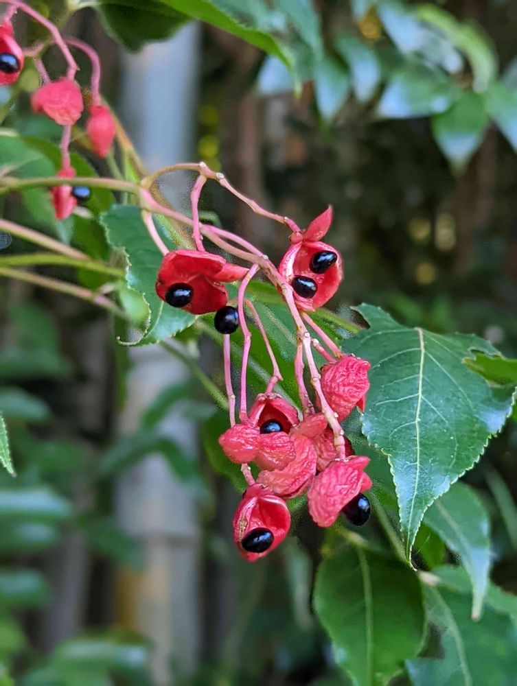 ずいぶん前からこの真っ赤な果実が凄く目立ってて、早く割れて中から黒い種出てこないかなあと待ってたんよ❤️⚫❤️