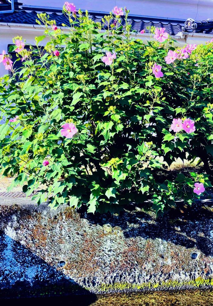 お出かけ先,出勤途中に,小川の側の芙蓉の花の投稿画像