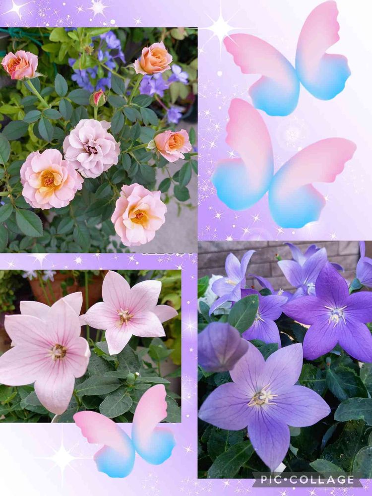 桔梗(ききょう),ミニバラ カーナハニーゴールド,ガーデニングの投稿画像