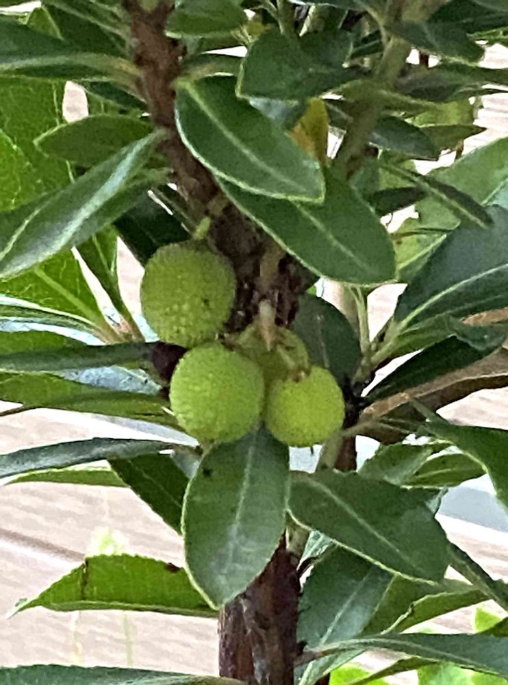 イチゴノキの実は少しずつ赤くなっ行くはずです💕