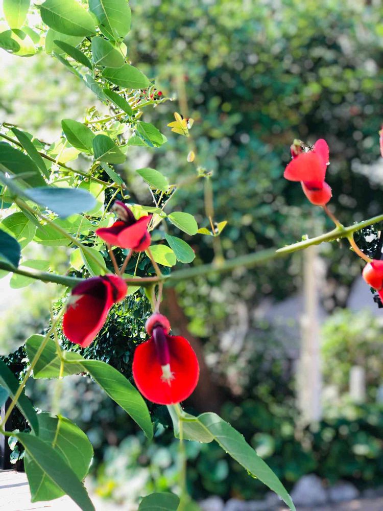 アメリカデイゴ 和名:カイコウズ(海紅豆)。蝶形の赤い花、すごくかわいい😍