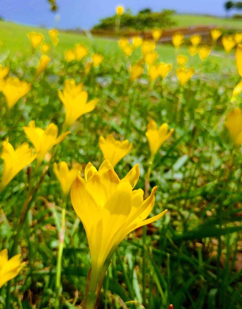 このレインリリー!今、沢山咲いています💛💛車で走っていると色々な所で見掛けます💛黄色のお花は元気が出ますよねー!(*^o^*)