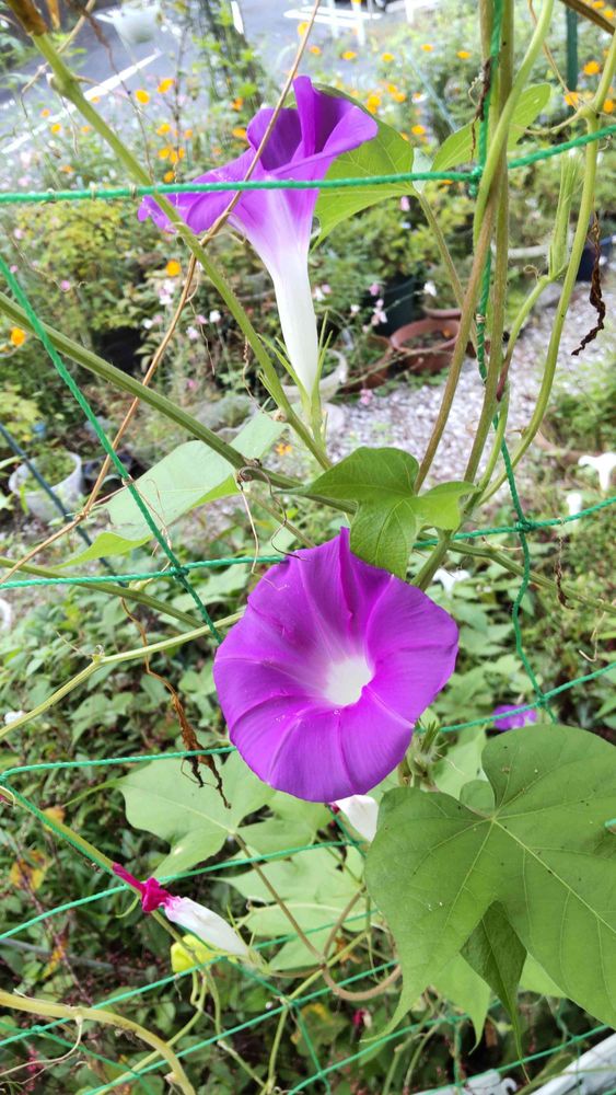 話が随分逸れましたが、すっかり枯れてしまったゴーヤに代わって、元々自分の物のようにネットに絡まって咲いている朝顔を、家の中からパシャリ📸