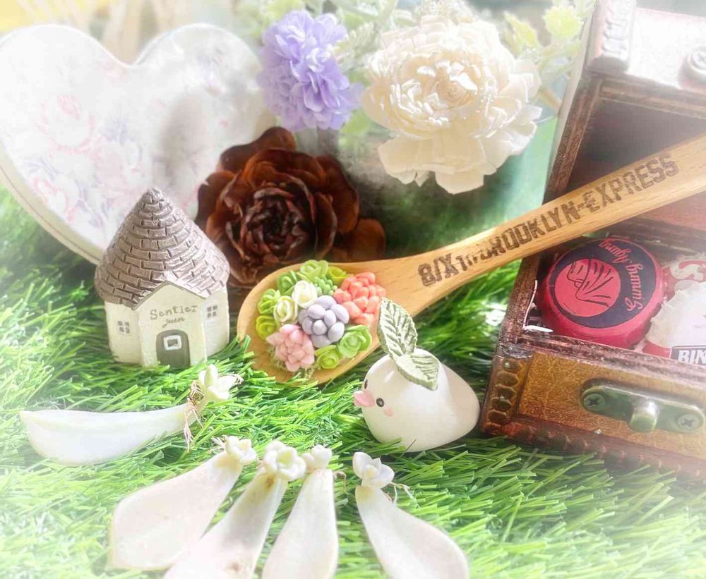 先日UGUISUさんから届いたひとくち多肉ちゃん🥄とハートの缶💗と可愛い王冠👑✨️とドライフラワー✿ᵕ̈*とふたばのたまちゃん