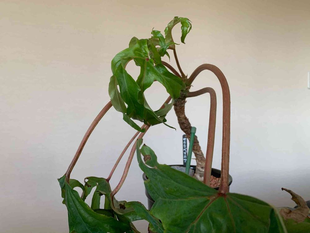今年は葉がたくさん繁りました。茎がやや細いまま伸びて葉の重たさに倒れてしまいそうなので支柱をあてて。