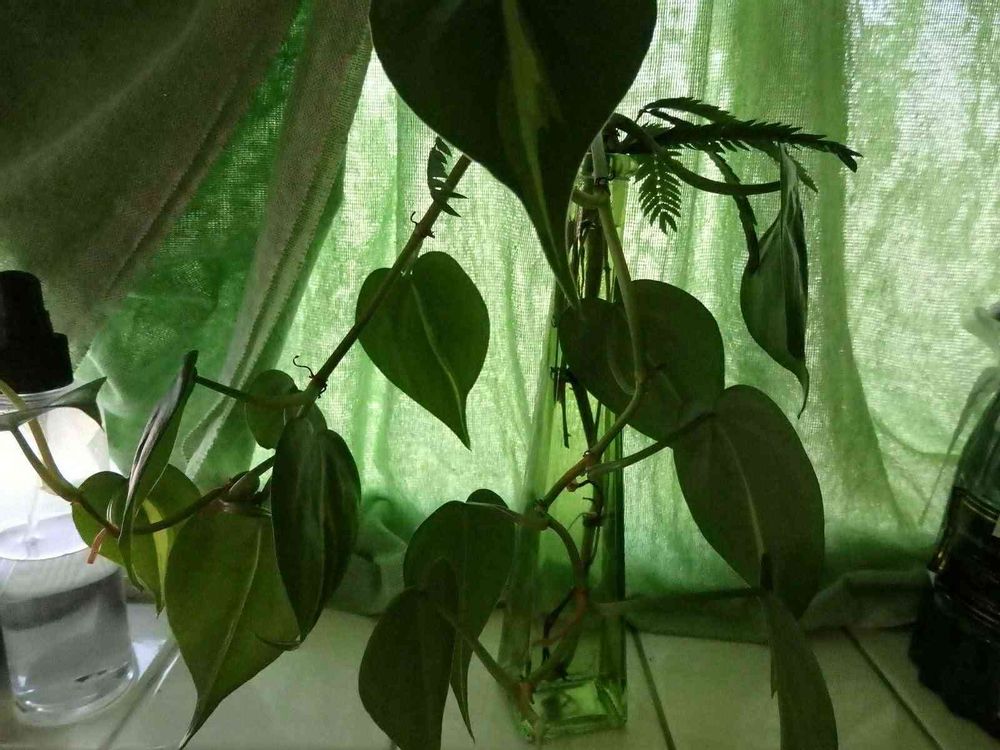 伸びすぎた所をバランスのために剪定した所を水耕栽培中🌿