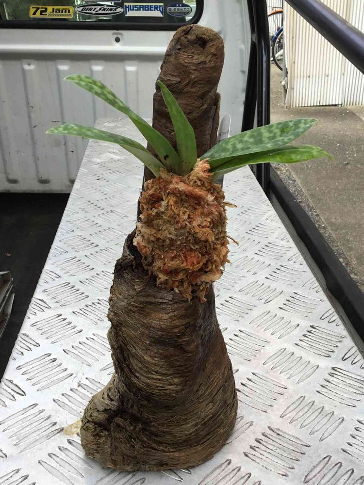 着生種じゃないけど、苔玉にして流木に括り付けた。