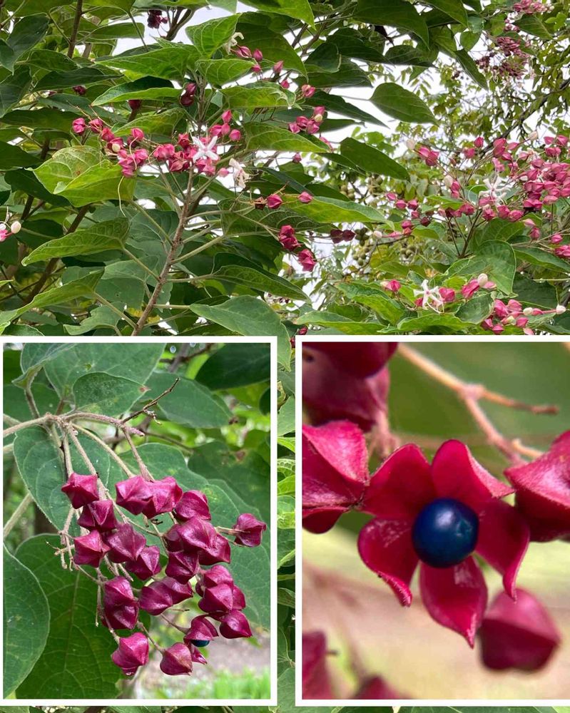 クサギ(臭木)シソ科 花咲いている時は香りで上を見上げる事あり 葉を触ると臭いそう 8/18から一月 果実が熟して光沢ある藍色に変化