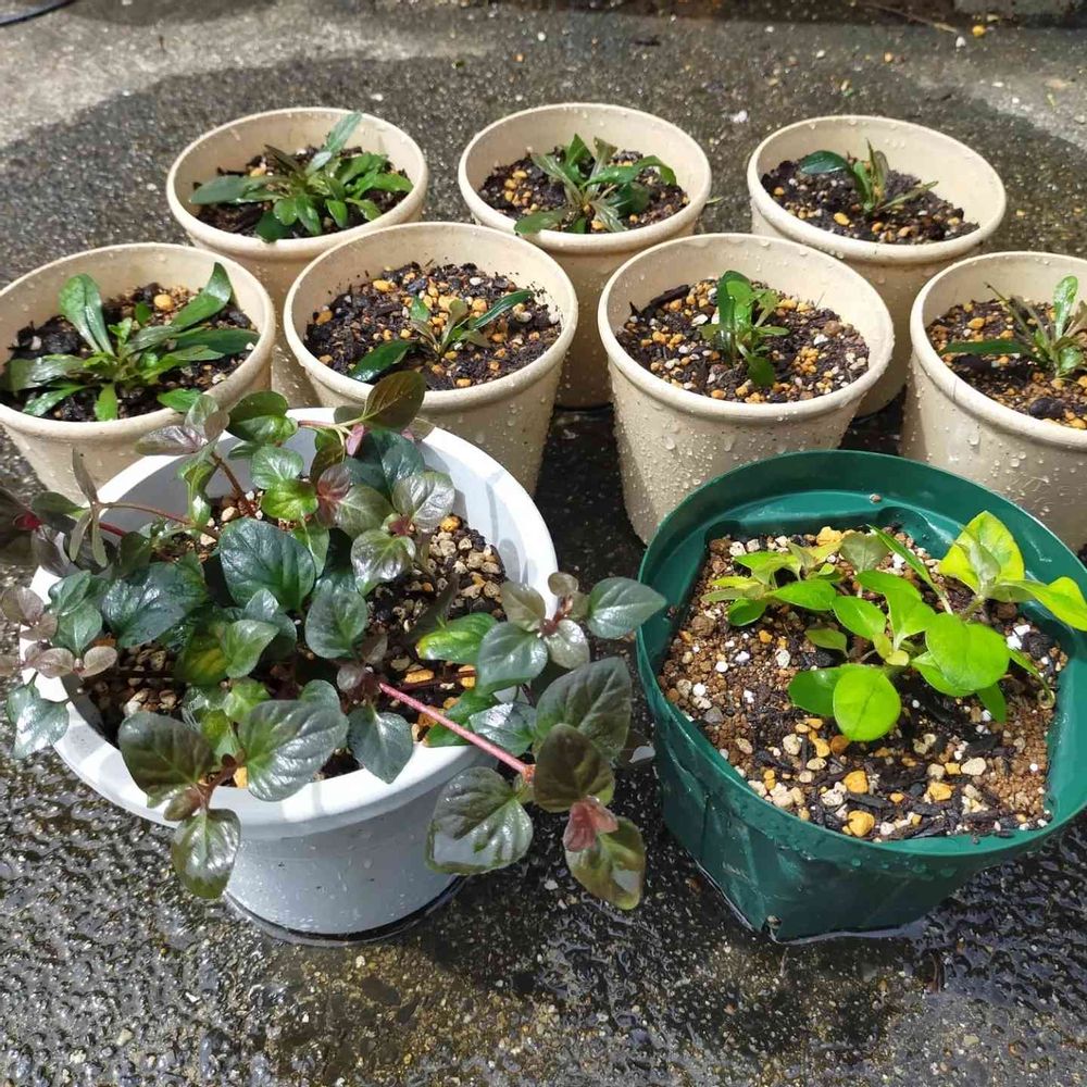グランドカバーにするのに挿し芽で増殖中のアジュガとリシマキアのリッシー&ペルシャンチョコレート