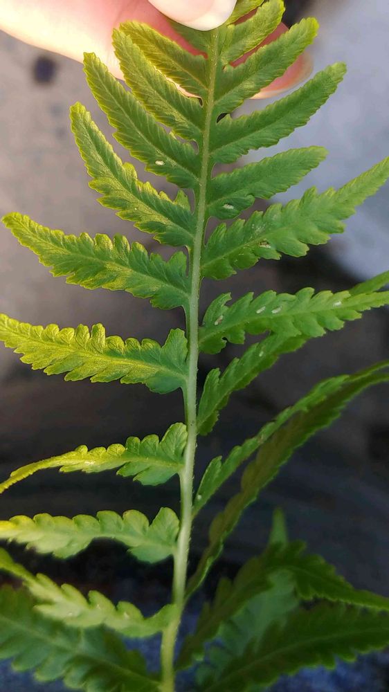 10/13追記 こちらのシダはイヌケホシダではありませんでした。誤情報を書き込んでしまい申し訳ありませんでした。そりゃ毛も生えてないわ。