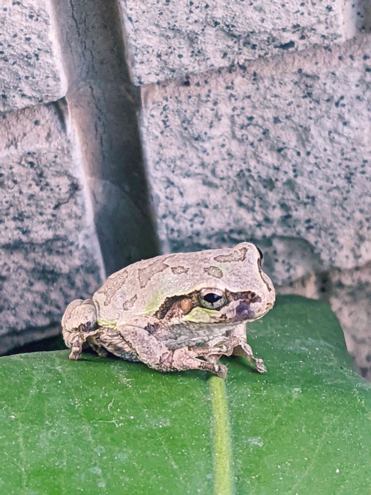 居心地が良いのか、緑になろうとしているのか……🐸🤔