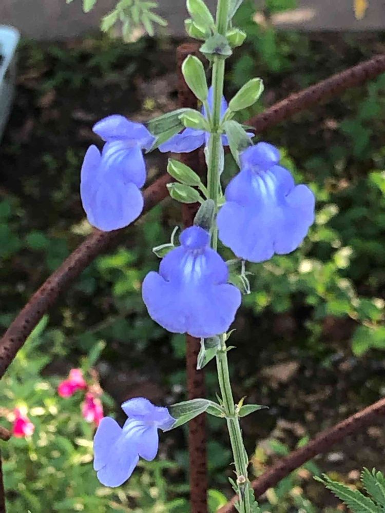 これまた大好きな宿根草、サルビア アズレアがずいぶん早くに咲き始めました。
