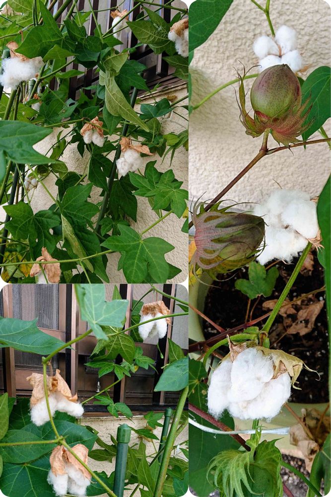 お花が咲く頃に見たこのお宅へ、そろそろ綿が出来てるかと覗きに行くと、立派なのがいっぱいついてました(*´∀`*)ポッ