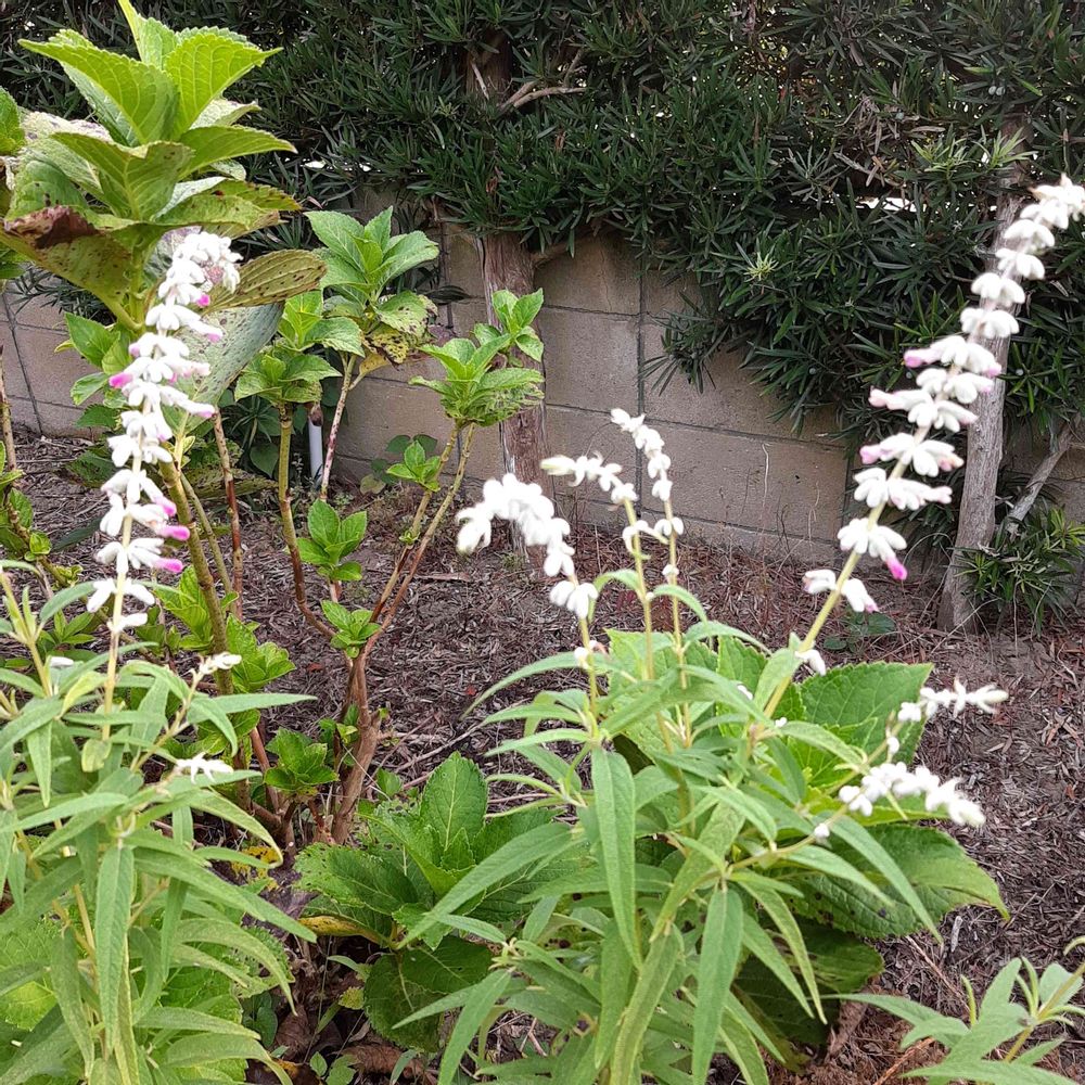 今年も咲いてきましたねー✨🤍💓🍀真っ白にピンクが混ざった、アメジストセージ✨昨年のも見返してきました😄🙋♀️