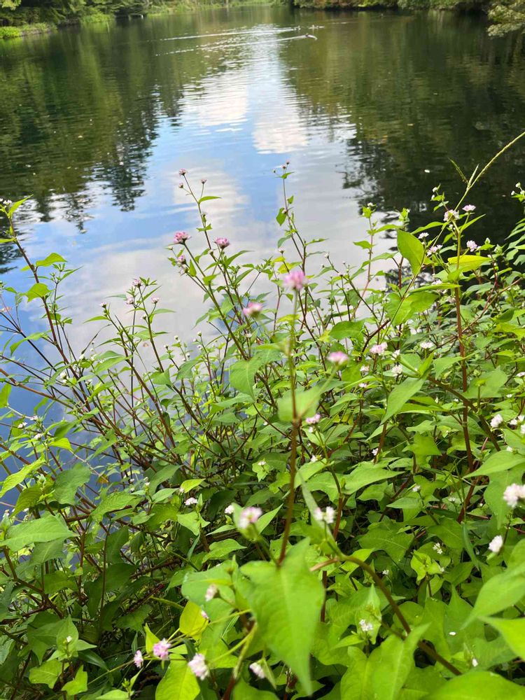 沼に映り込んだ空がとても綺麗だったので、花よりも多目になっちゃいました😁