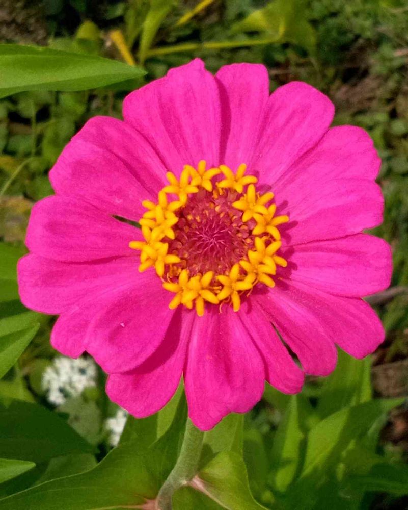 通りすがりに見かけました、とあるお宅の畑に咲く百日草(ヒャクニチソウ)の花☺️