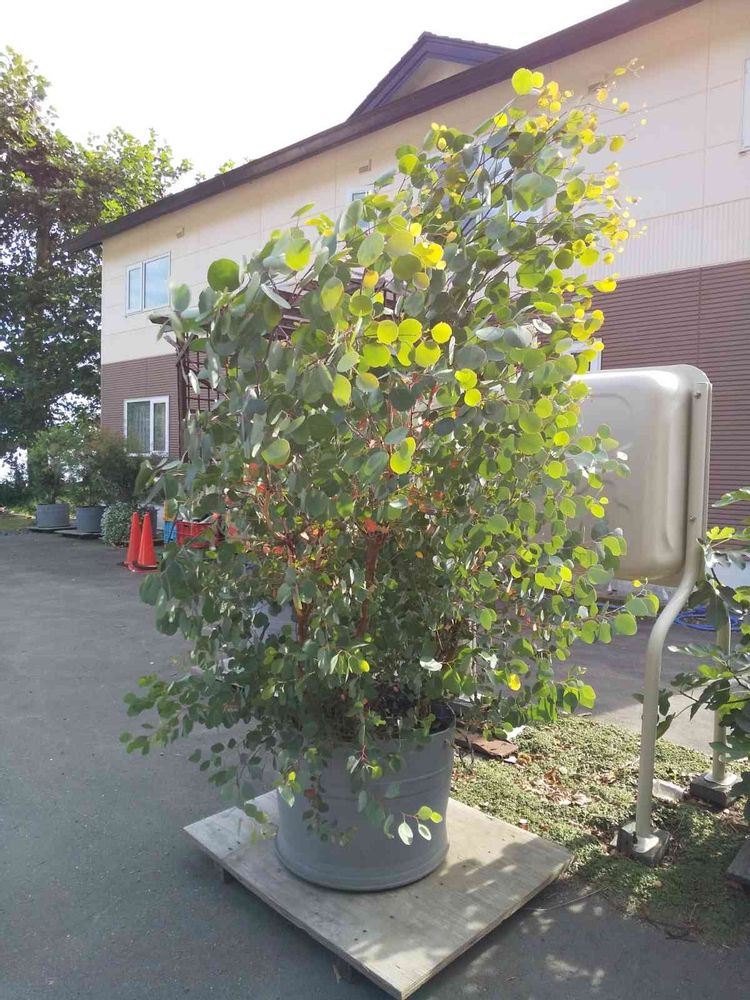 先日ドライフラワーリースの体験レッスンに行った時に、お邪魔した工房にこんなに大きなユーカリの木がありました。