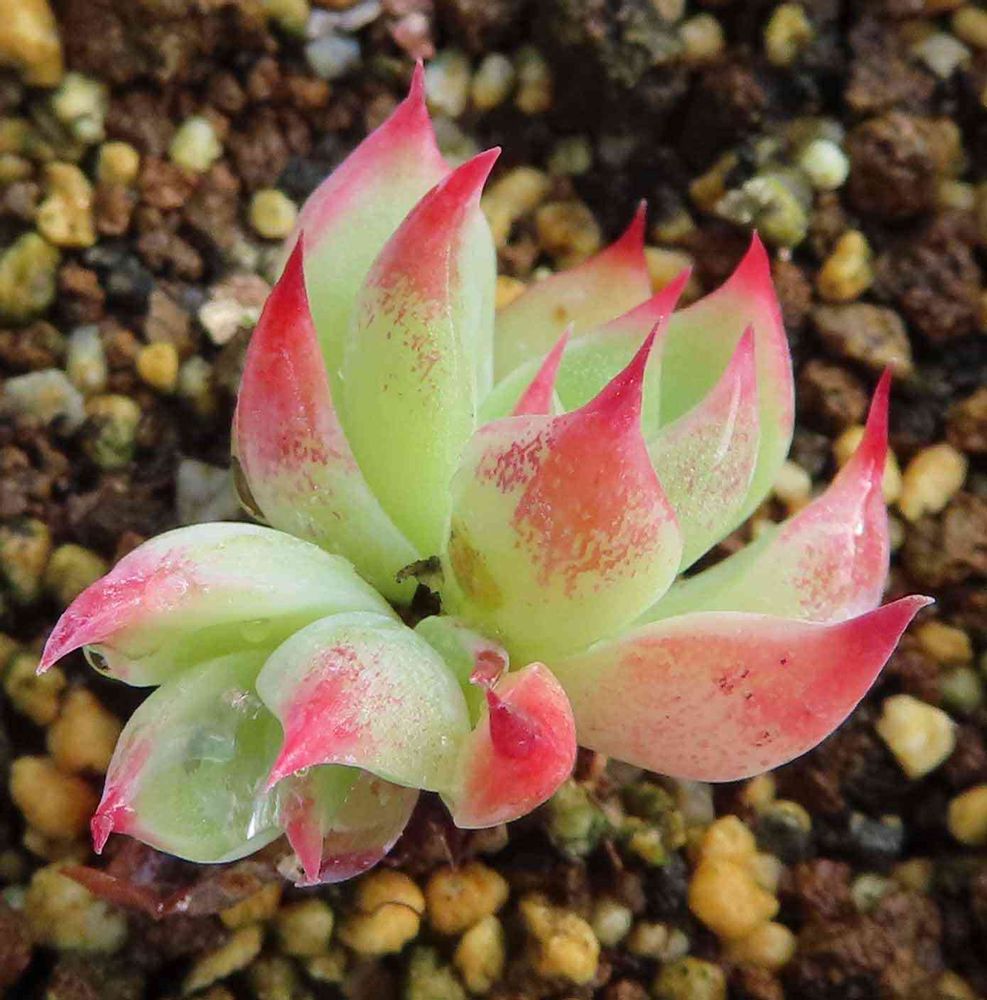 昨日に続いて,葉挿しで双頭になったチワワエンシス。まだ小さいのにもかかわらず爪先がしっかりと赤に色付いている。