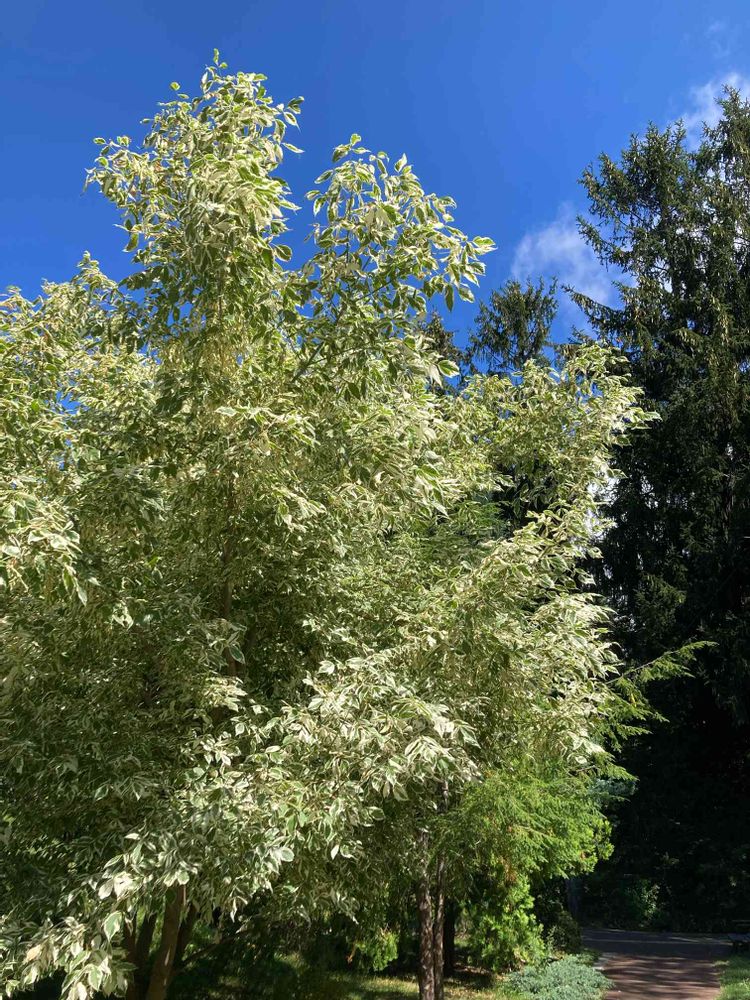 トネリコバノカエデ?の斑の入った葉が白く輝いてました😊