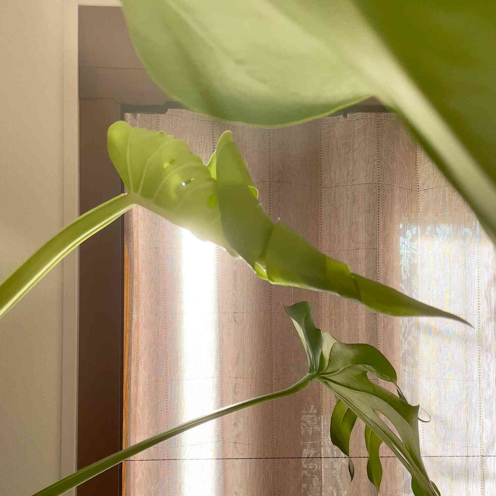 モンステラの新葉のマキマキがゆるんで、開いてきました🤗