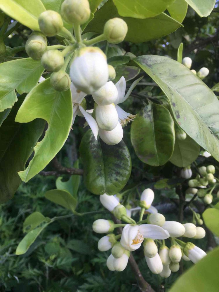 晩白柚の花が咲いてました。やはりミカンより大きいですね。