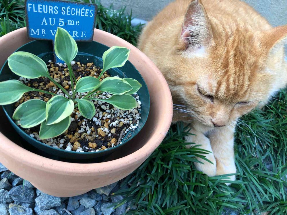 …ではなくて、先月お迎えした乙女ギボウシと体重5㎏超えの猫。