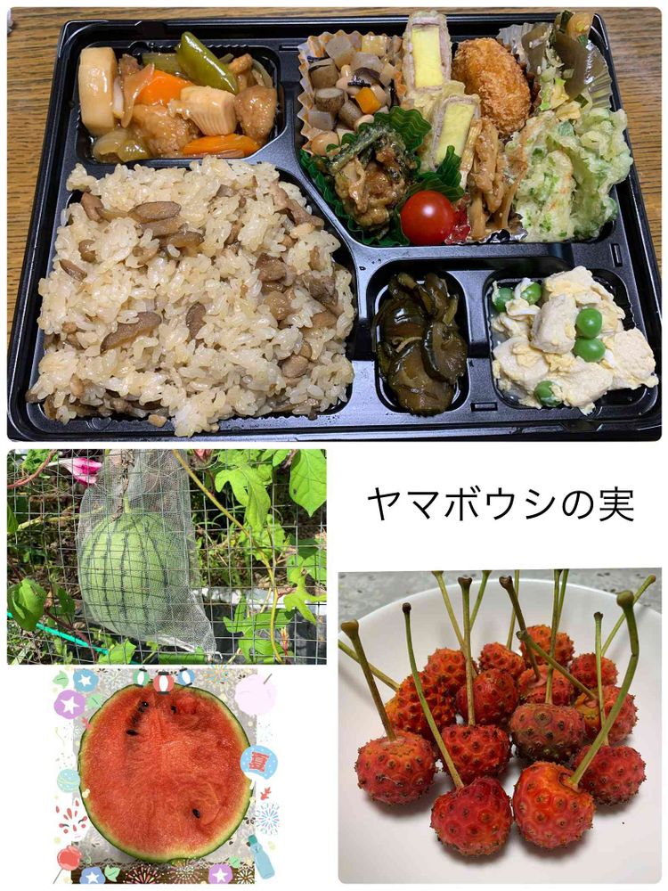 今日は鶏ごぼうご飯・酢豚・五目豆煮・さつま芋の豚巻き・かぼちゃ🎃コロッケ・蒸しなす🍆の香味だれ漬け・豚🐷バラとゴーヤのこってりみそ炒め・ミニトマト🍅・筍のきんぴら・竹輪の磯辺揚げ・ゴーヤの天ぷら・高野豆腐の卵とじ・Qちゃん漬けでした😋