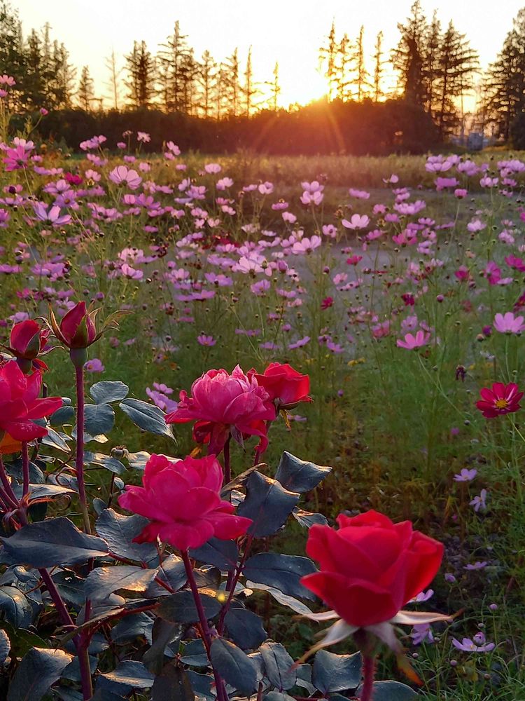 🌹とコスモスと夕陽のコラボ!良いね♥良いね♥マジックアワー😍素敵です。