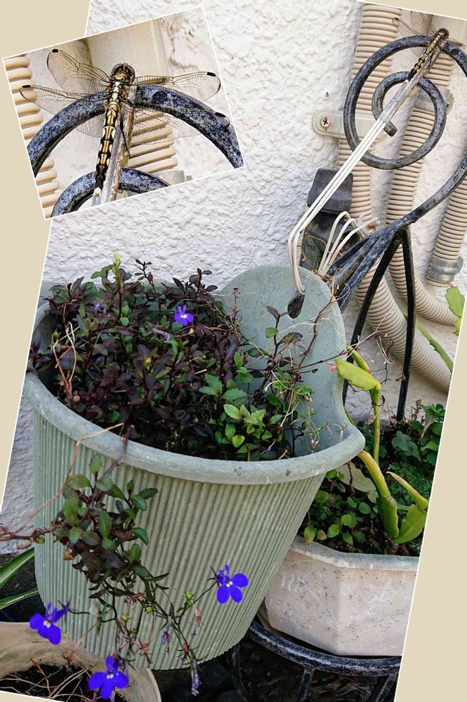 写真を撮ろうとしたら何処からかトンボが参加してくれました♪💜☘️