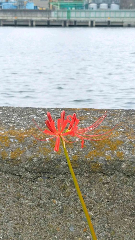 ヒガンバナ,岸壁にお花を,彼岸花が咲いたの投稿画像