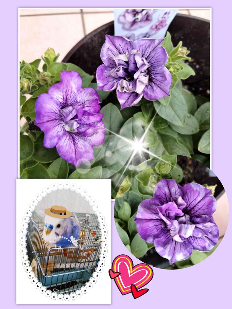 八重咲きのpetuniaと帽子を被ったクッカちゃん可愛いですね💕😊